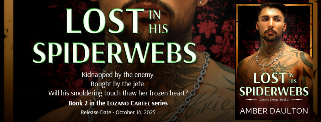 Lost in His Spiderwebs is the second book in the Lozano Cartel series, in which all the books can standalone. Up next is Corrupting His Wife and will be released in early 2026. It’s a dark romance where my best friend, Enrique, kidnaps a woman the week before her wedding to another man. It’s going to be a mess for me to clean up. Right now, though, I’m too busy dealing with my own wayward woman to worry about Enrique with his.